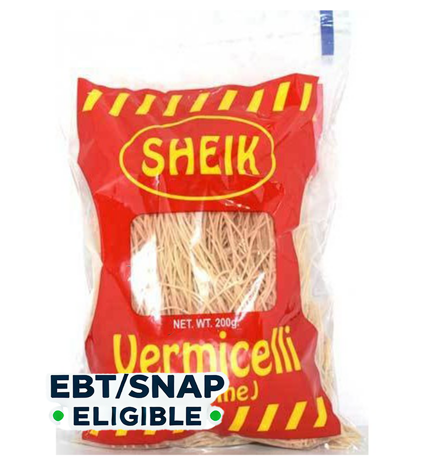 Sheik Vermicelli 7oz is the perfect choice for authentic Middle Eastern cuisine. Made from high quality durum wheat semolina, this vermicelli is versatile and easy to cook. Enjoy its delicate flavor and light, fluffy texture in dishes such as soups, salads, and desserts.